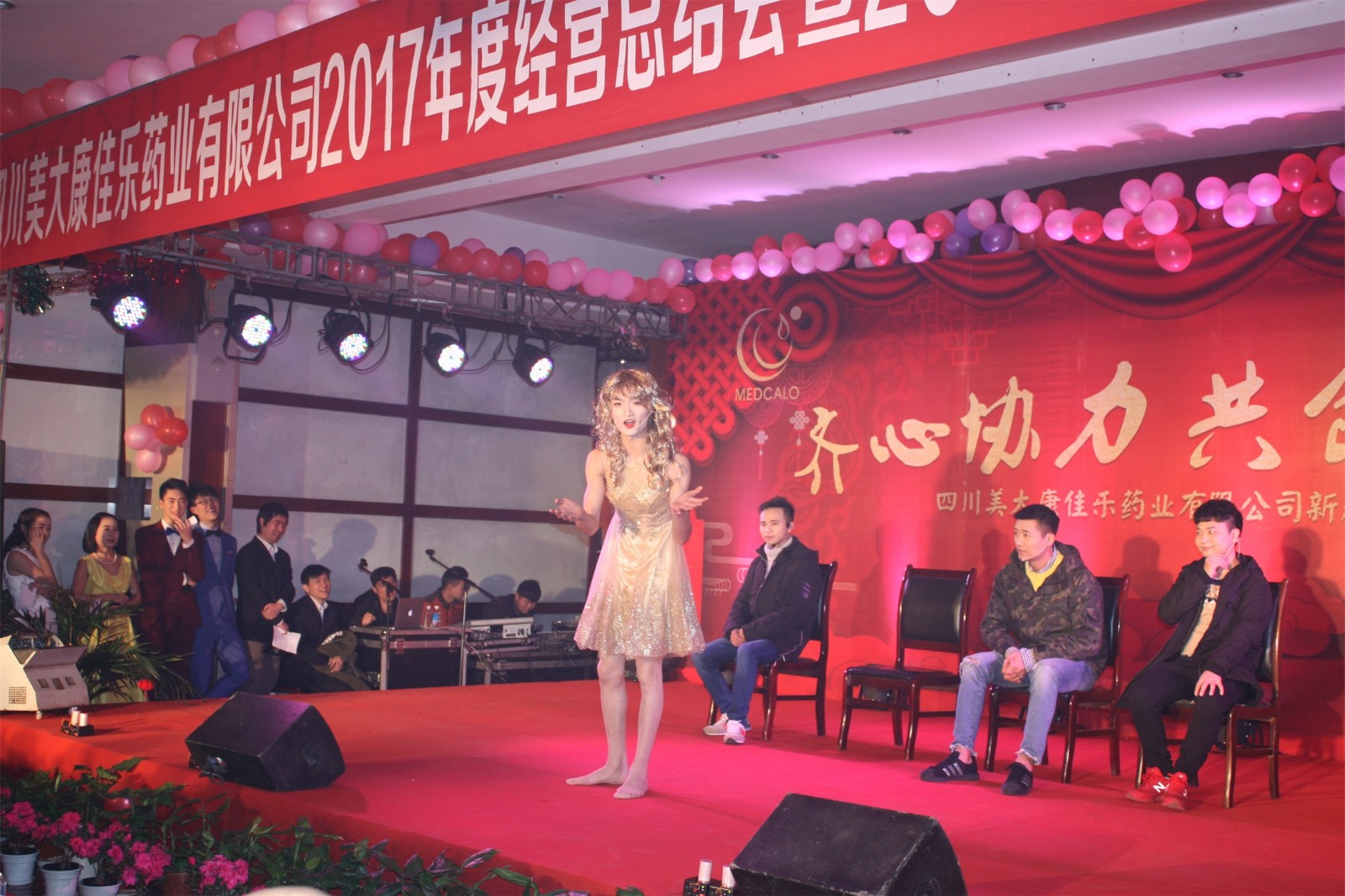 华美的服饰、娇俏的舞者,开场舞美丽中国拉开了新春团拜会的帷幕。小品抢红包把握当下全民互动的热点,把人们抢红包时各式各样的心理、行为等情形刻画得入木三分。营销中心的退伍同胞们表演的朗诵、小合唱咱当兵的人,在新时代中带领我们一同走进他们当初的芳华岁月,QC处员工照自然深情独唱情歌两三首,软袋车间管理层自编的朗诵——佳乐颂,歌颂、感恩这十几年来,大家和公司同舟共济的风雨路、成长路、幸福路,营销内勤自编自演的舞蹈童话镇,步伐轻盈,活泼灵动,仿佛让我们看到童话王国里俏皮的童话人物在给我们讲故事,黄金搭档周禄富和徐豪的相声洗脑2延续了去年的诙谐幽默,小合唱团结就是力量似画龙点睛之笔,提醒我们全体员工要聚力拧起一根绳,勇创新的辉煌。