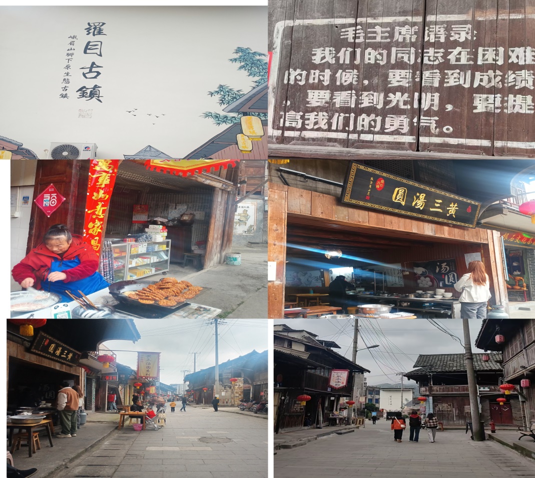 下午两点,罗目古镇午餐,进入古镇,古风依旧,街容街貌基本完整。随处可见一幢幢穿榫斗,梁雕龙画凤的古旧木板房。时光静静淌过,淳朴善良的居民们初心不改,更是保持着许多原生态的生产生活习惯,保留了铁匠铺、理发店、裁缝铺、竹编等传统手工艺。热闹和幽静,一切在这里都刚刚好。我多看了一眼炸豌豆粑粑的嬢嬢,就起身追着叫我免费品尝,太热情了。古镇不大一眼能望到街头。